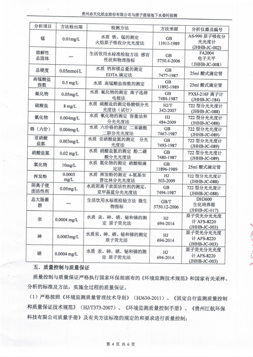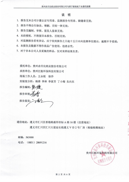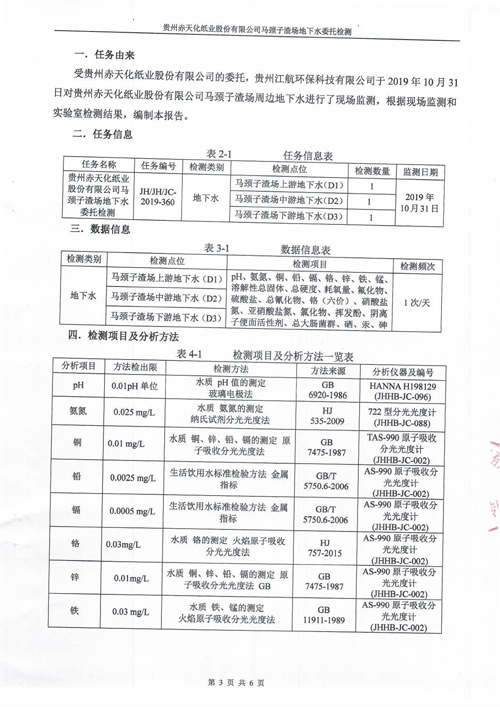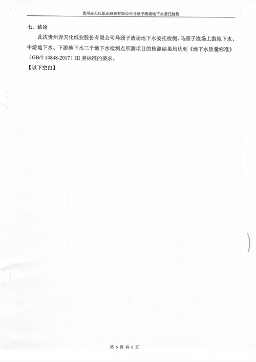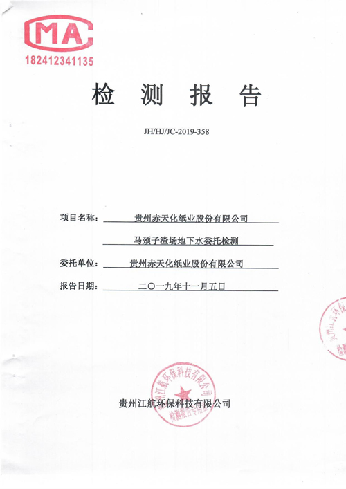貴州赤天化紙業(yè)股份有限公司馬頸子渣場(chǎng)地下水委托檢測(cè)