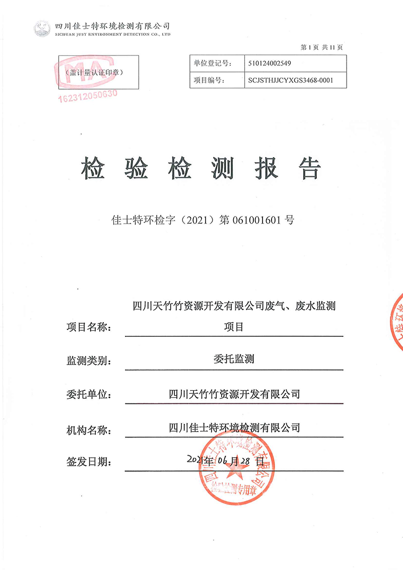 四川天竹竹資源開(kāi)發(fā)有限公司2021年2季度環(huán)保公示資料