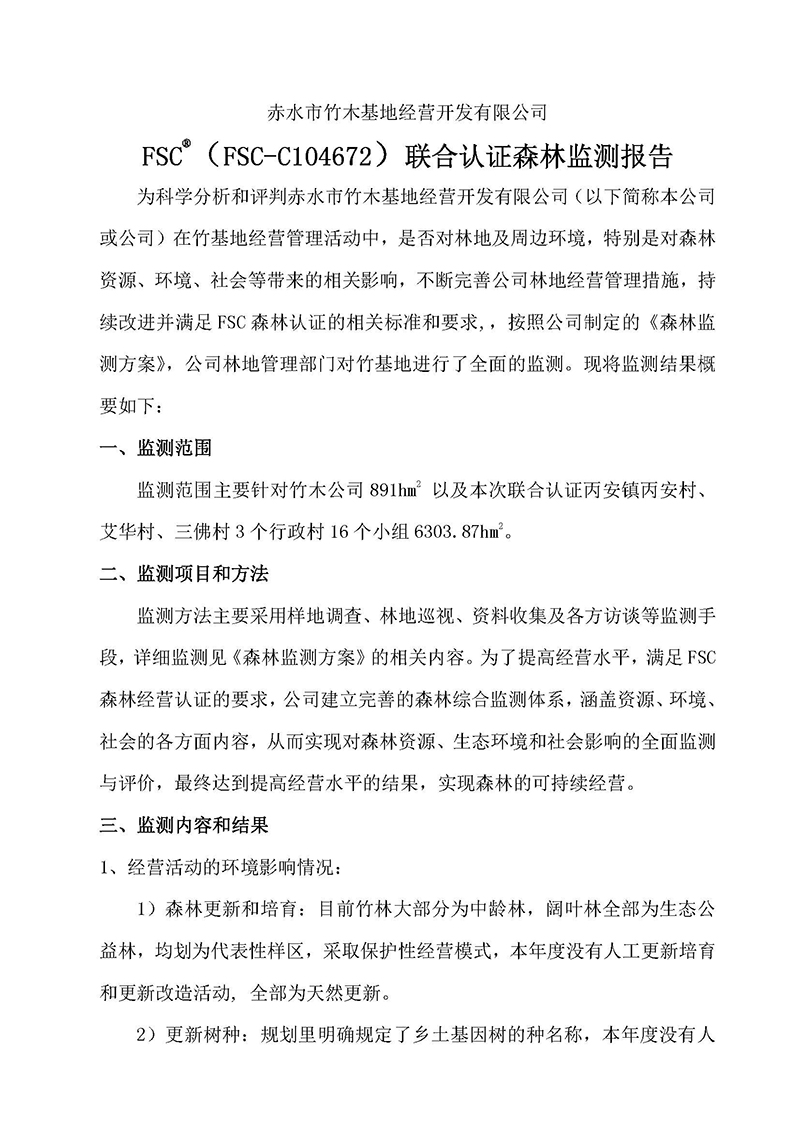 赤水市竹木基地經(jīng)營開發(fā)有限公司 聯(lián)合認證《森林可持續(xù)經(jīng)營方案》(2021-2030) 概要
