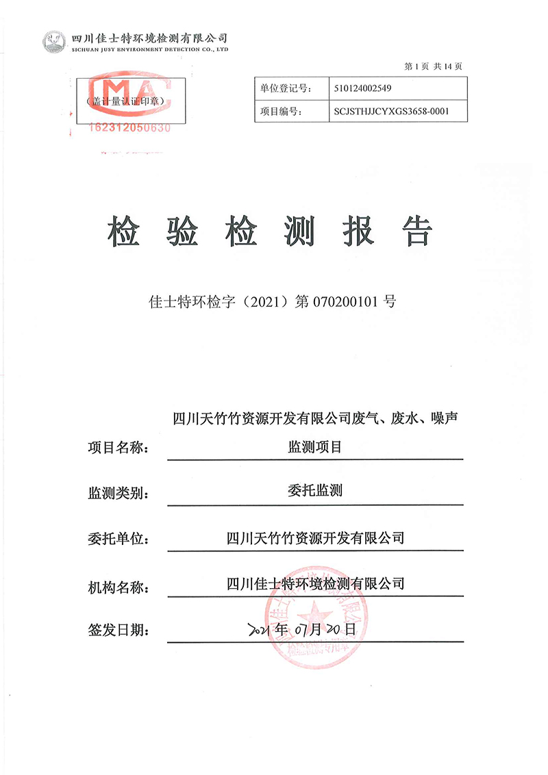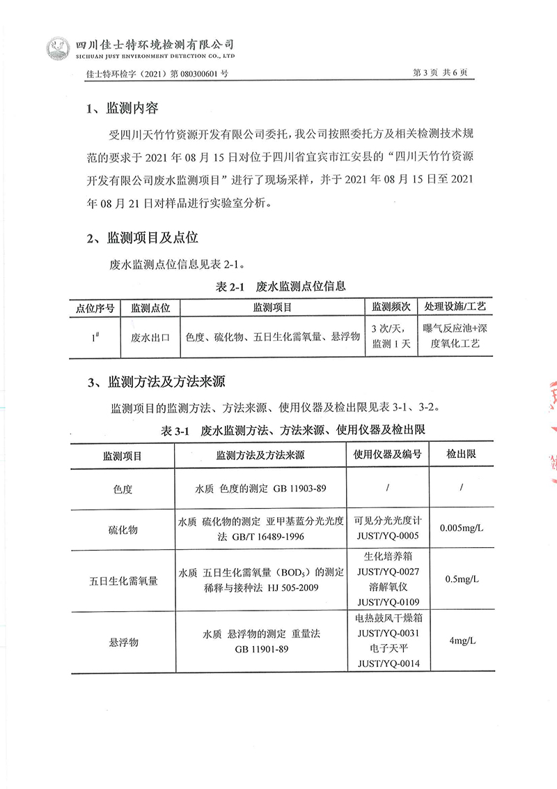 四川天竹竹資源開發(fā)有限公司2021年3季度環(huán)保公示資料