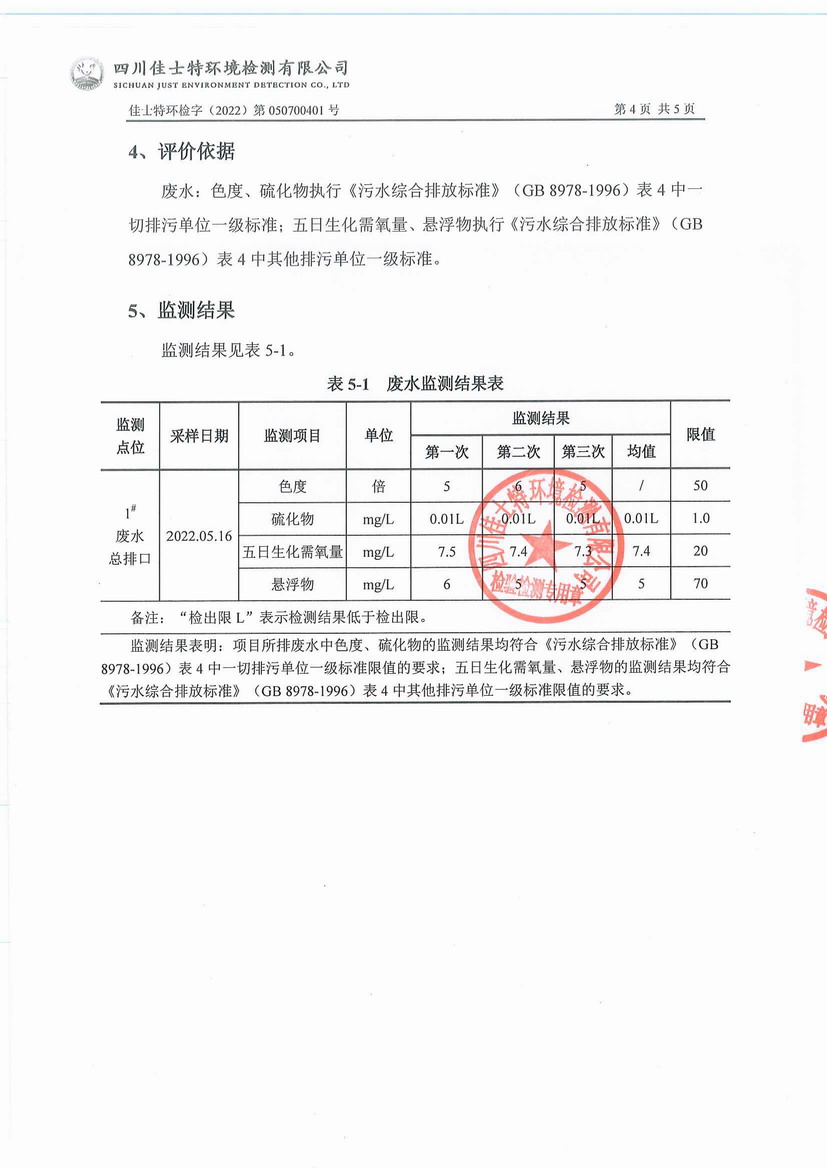 2022年5月自行監(jiān)測報告-水