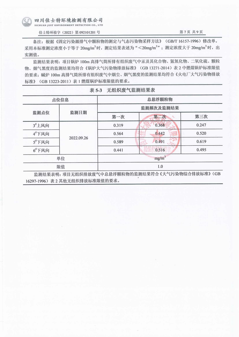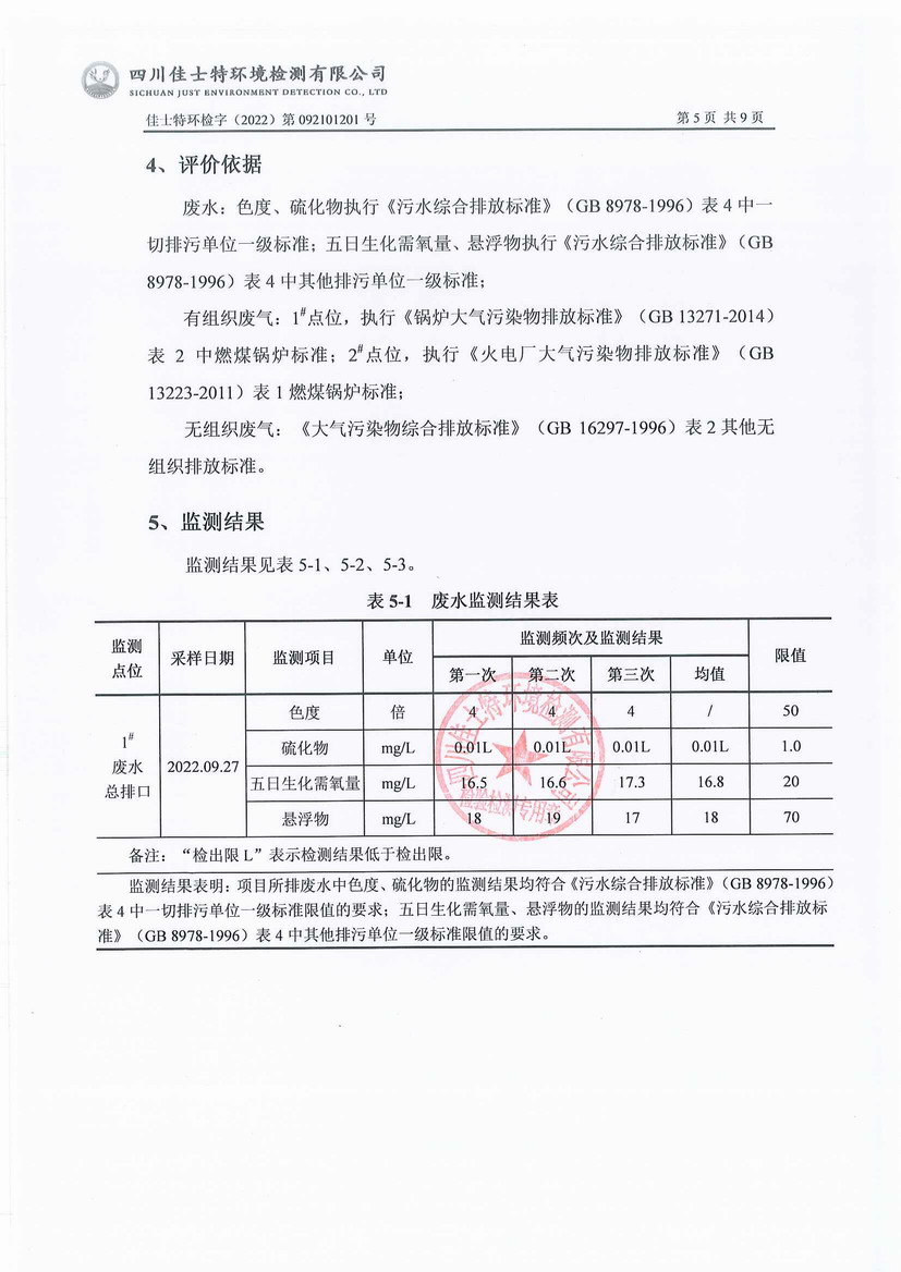 2022年9月自行監(jiān)測報告-廢水、廢氣