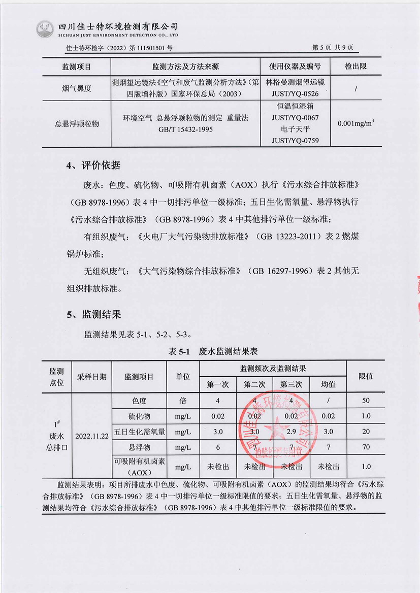 2022年11月自行監(jiān)測(cè)報(bào)告-廢水、廢氣
