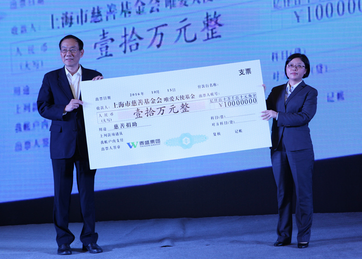 泰盛集團(tuán)一直把關(guān)注社會(huì)公益事業(yè),成為優(yōu)秀企業(yè)公民當(dāng)做企業(yè)文化的重要組成部分,并持之以恒地加以踐行。在活動(dòng)現(xiàn)場,作為上海市慈善基金會(huì)唯愛天使基金的長期會(huì)員,再次向唯愛天使基金進(jìn)行捐助。授人玫瑰,手有余香;奉獻(xiàn)愛心,收獲希望。泰盛集團(tuán)表示將與更多的合作伙伴、更多的消費(fèi)者共同將愛心持續(xù)傳遞,真正做到取之于社會(huì),反饋于社會(huì)。